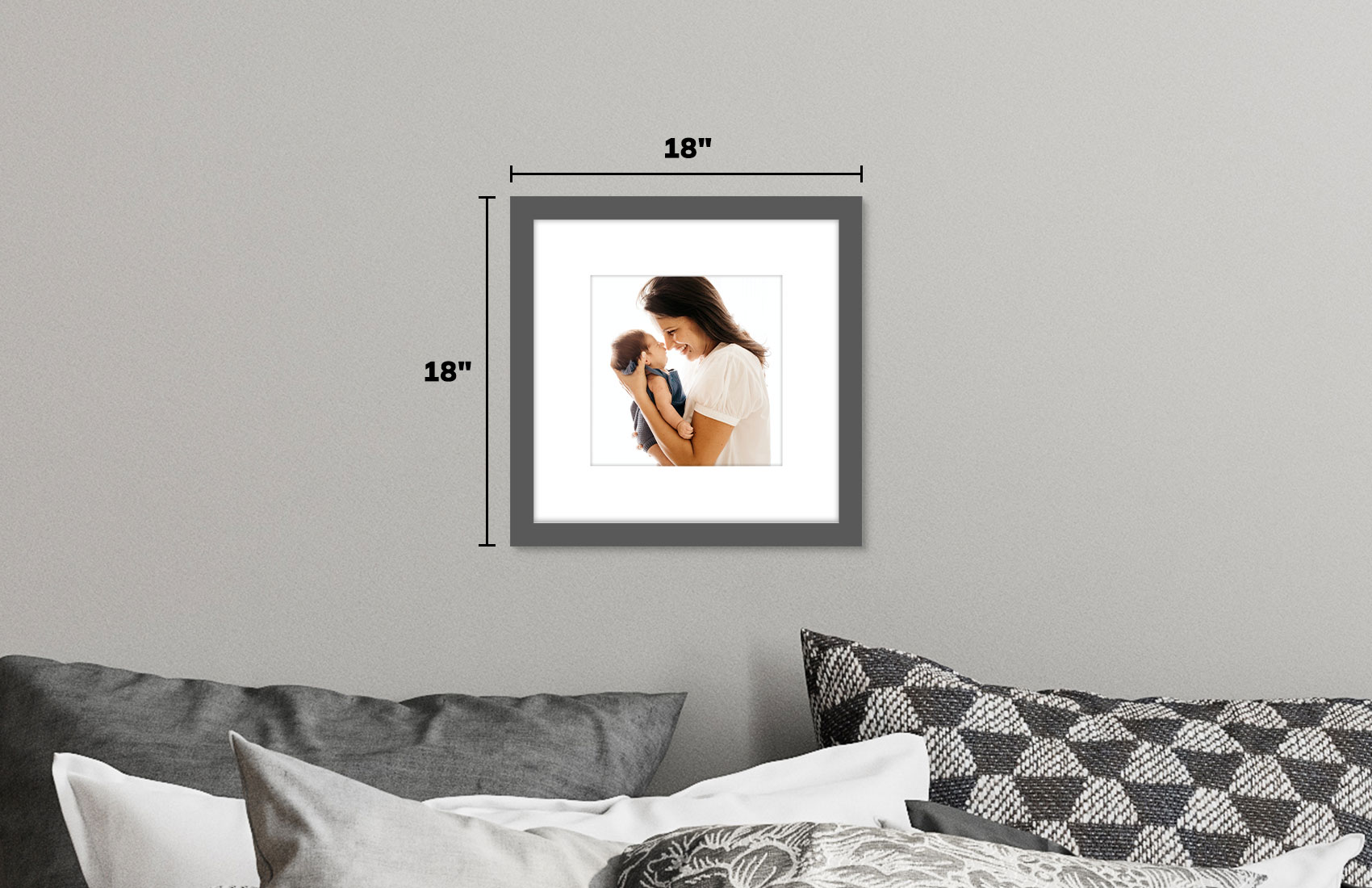 Classic grey frame with white matte, brings a touch of elegance and class to your décor. Wood frame includes your 12x12 print!