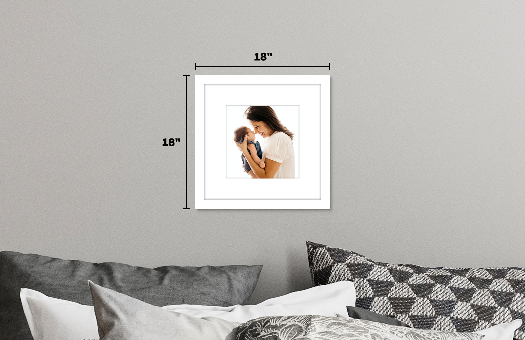 Classic white frame with white matte, brings a touch of elegance and class to your décor. Wood frame includes your 12x12 print!
