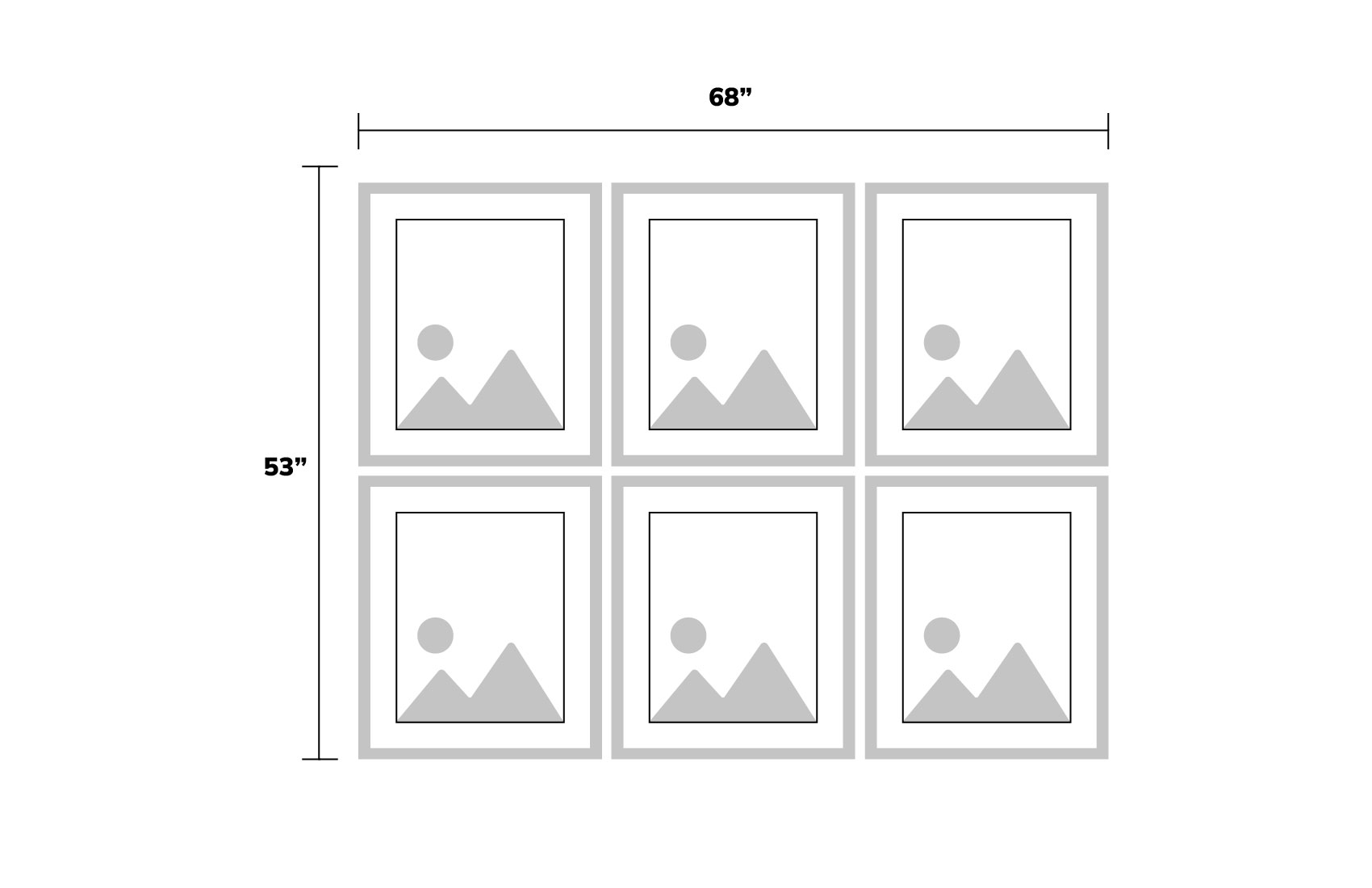 The perfect solution for that empty wall. Create a beautiful feature for your home with Gallery Wall Frames. Available in a variety of sizes ranging from 8x8 to 20x30 and available in different sets and combinations. Frames are available in Black, White & Grey to match any décor or style. Whether you are hanging 1 frame or 9, each frame comes with a hanging template to make installation and spacing easy.