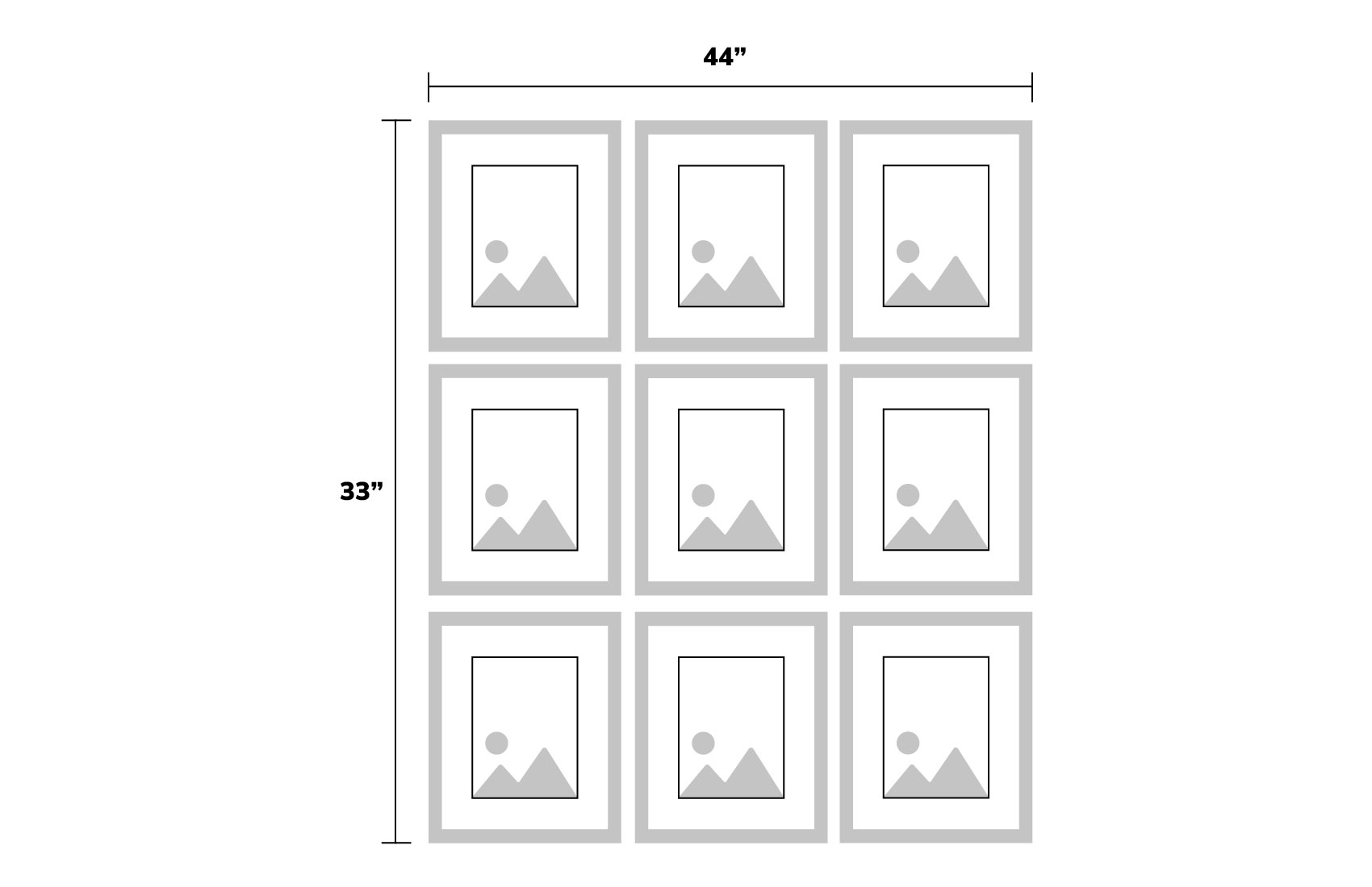 The perfect solution for that empty wall. Create a beautiful feature for your home with Gallery Wall Frames. Available in a variety of sizes ranging from 8x8 to 20x30 and available in different sets and combinations. Frames are available in Black, White & Grey to match any décor or style. Whether you are hanging 1 frame or 9, each frame comes with a hanging template to make installation and spacing easy.