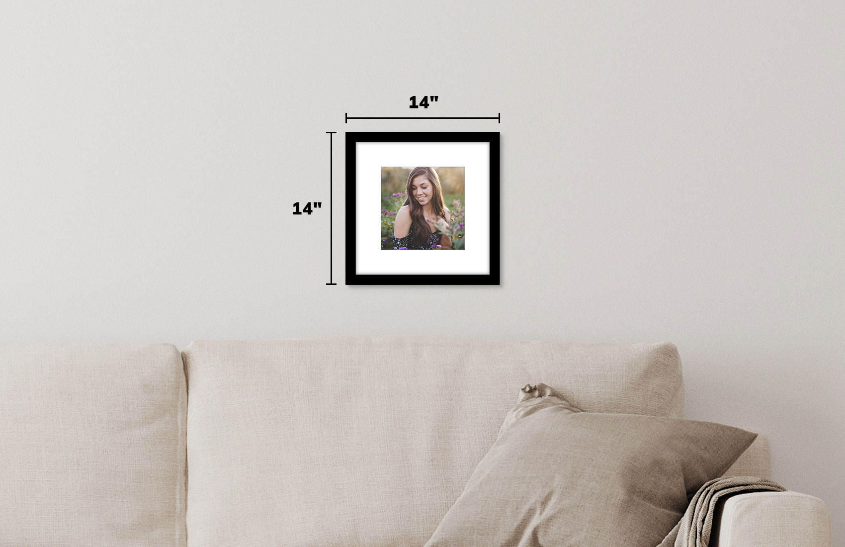 Classic black frame with white matte, brings a touch of elegance and class to your décor. Wood frame includes your 8x8 print!