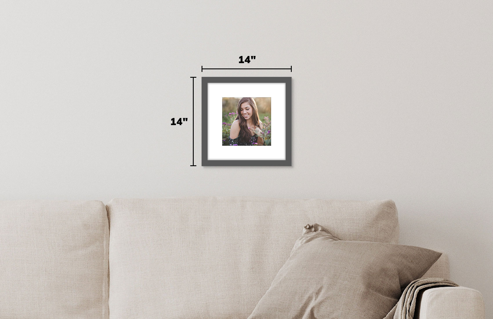 Classic grey frame with white matte, brings a touch of elegance and class to your décor. Wood frame includes your 8x8 print!
