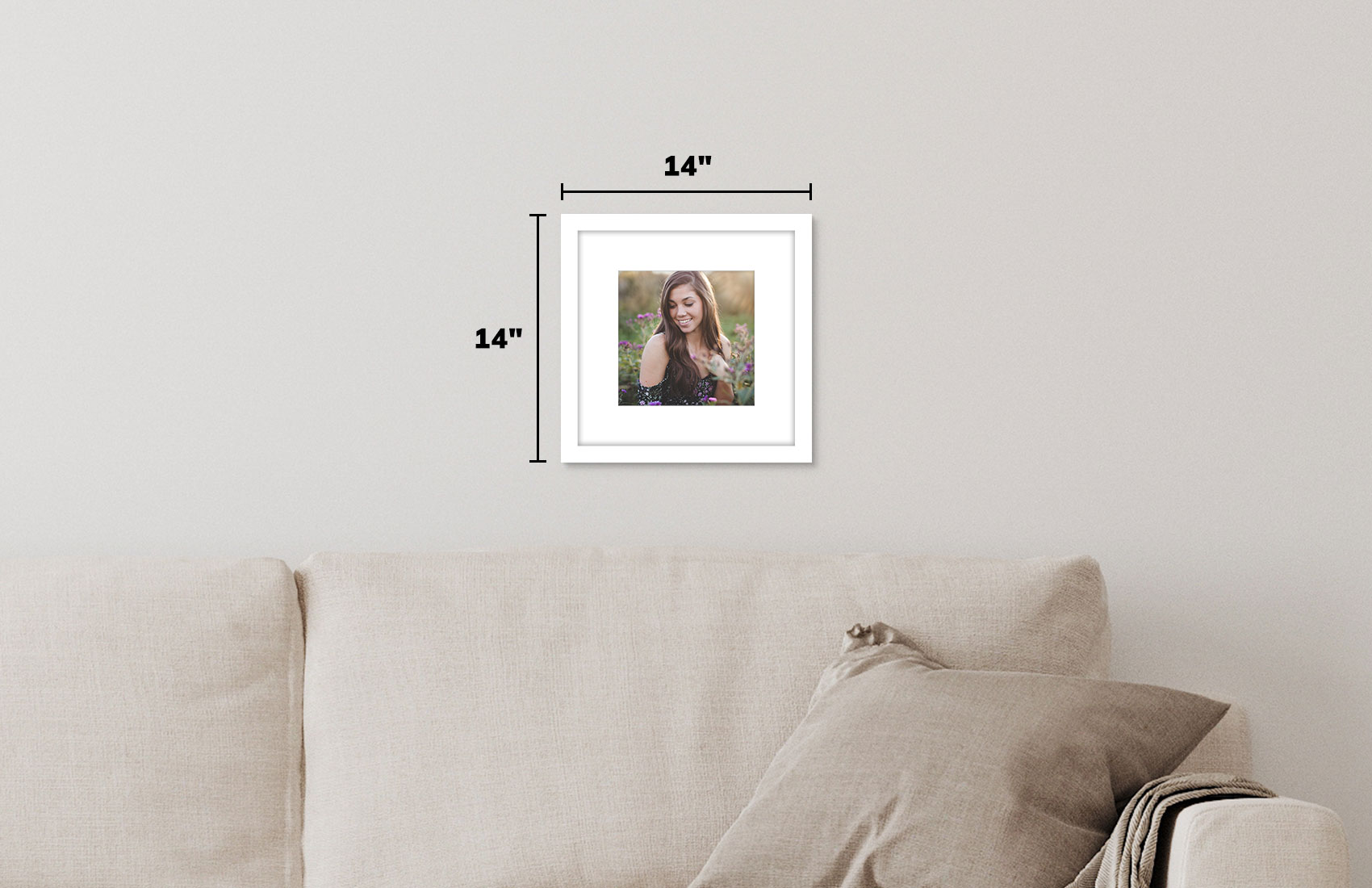 Classic white frame with white matte, brings a touch of elegance and class to your décor. Wood frame includes your 8x8 print!